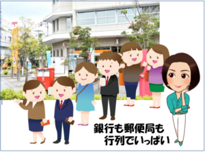 ゆうちょ窓口での手続きを終えて帰るときには、なんとATMの前に人だかりができていました。