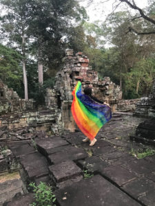 ↑カンボジアの遺跡でひとり舞う。嬉しくて自然に笑みがこぼれます。
