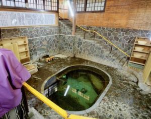 鉛温泉の名物は、日本一深い自噴天然岩風呂『白猿の湯』です。