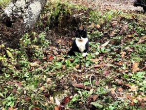 バスで鉛温泉に着くと、白黒の猫が出迎えてくれました(どこの猫かわかりませんが)。